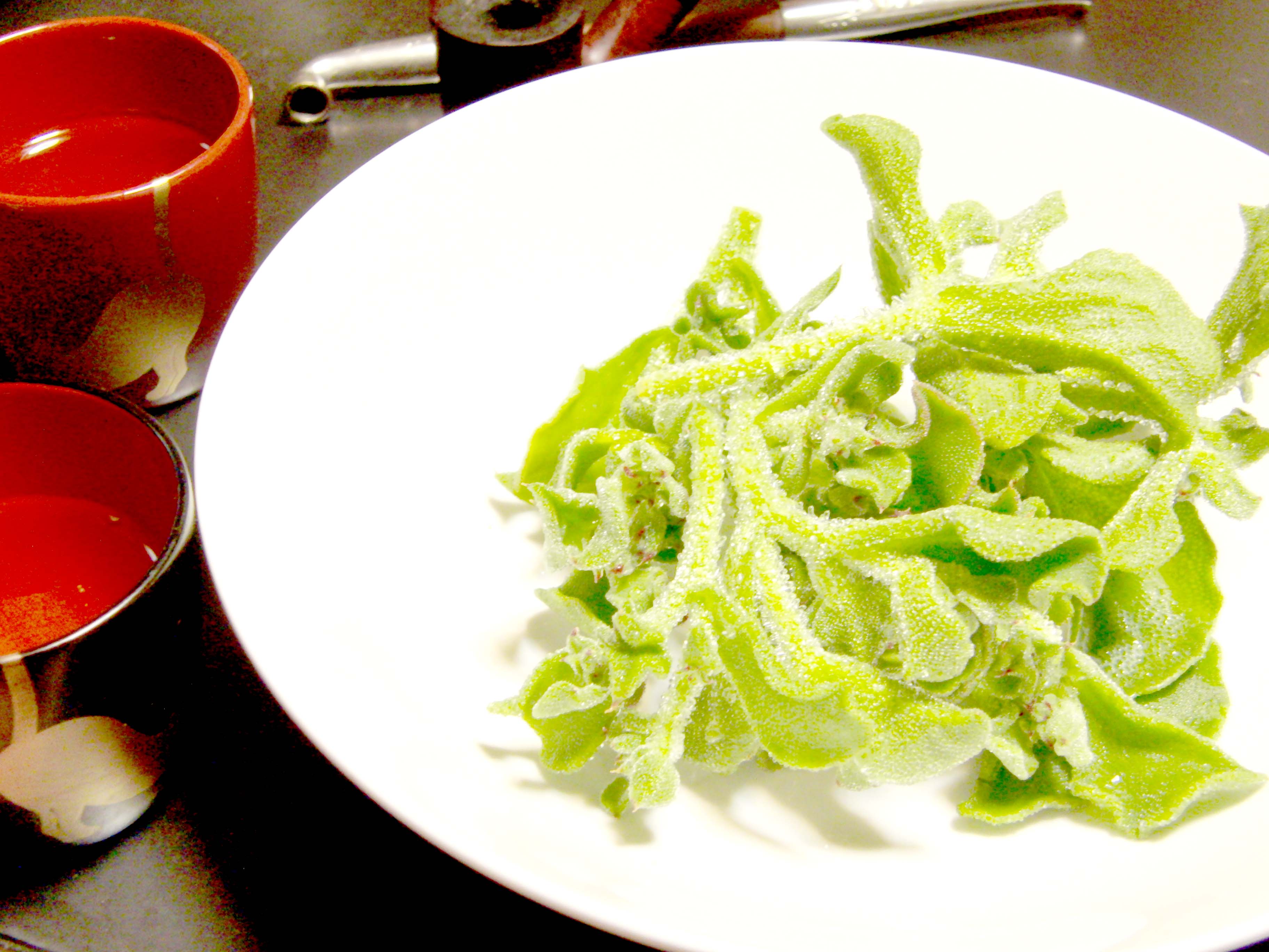 この間、ちょっとした八百屋さんで、アイスプラントを買いました。1パック75enです。マヨネーズで食べました。食感が良い。